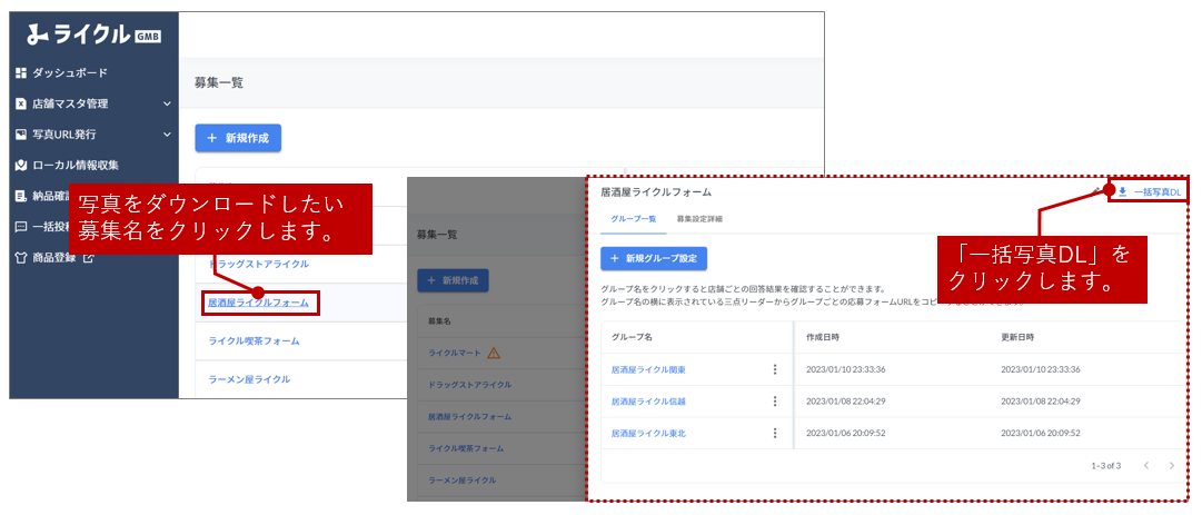 募集一覧から一括写真ダウンロードする場合
