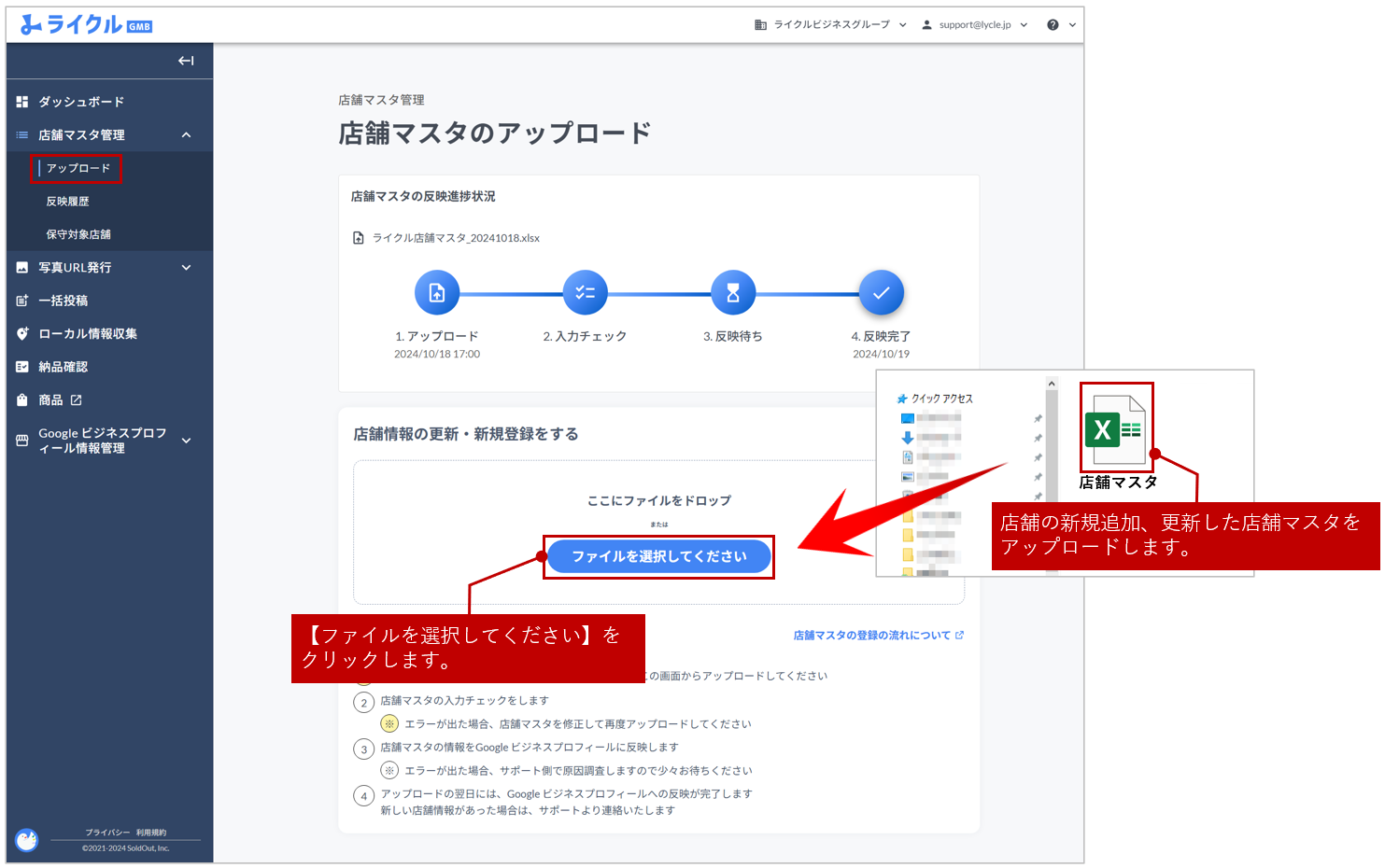 4 店舗マスタのアップロードが完了となり翌日に、Google ビジネスプロフィールへの反映処理が行われます。